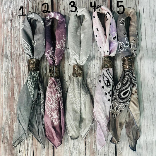 Purple & Grey Hand Dyed Bandanas with Leather Slides