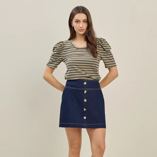 Jewel Button Denim Mini Skirt